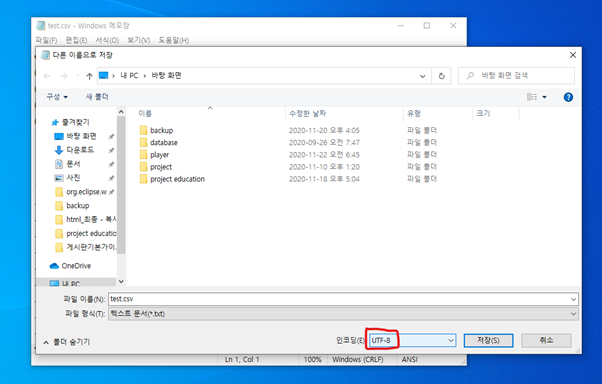이 부분을 utf8로 변환시켜준 다음 저장을 합니다.