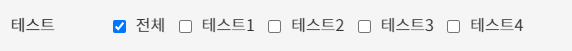 하지만 이 기능만 하면 전체를 제외한 나머지 테스트1부터 테스트4까지 체크할 경우 전체의 체크표시는 남아있게 됩니다. 이를 제어하려면 별도의 함수가 필요합니다.