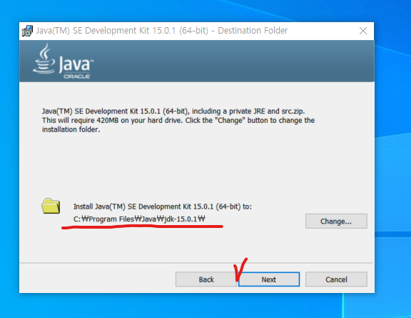 그리고 환경변수를 설정하기 위해서 설치할 장소를 잘 지정한 후, 다음을 클릭합니다.