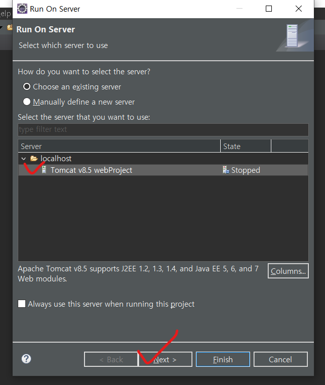 그러면 해당 프로젝트에 톰캣를 지정시켜주면 마무리가 됩니다.