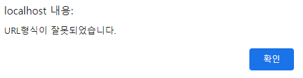 입력한 값이 정규식이 아니면 'URL형식이 잘못되었습니다'란 알림창이 뜨고,