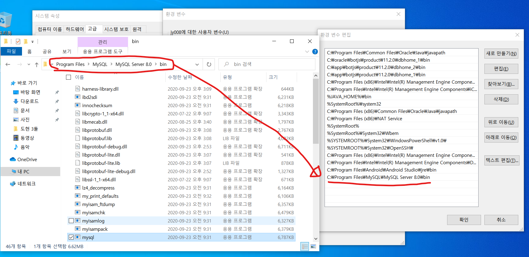 윈도우에서 mysql을 인식할 수 있도록 도와주는 작업이죠
