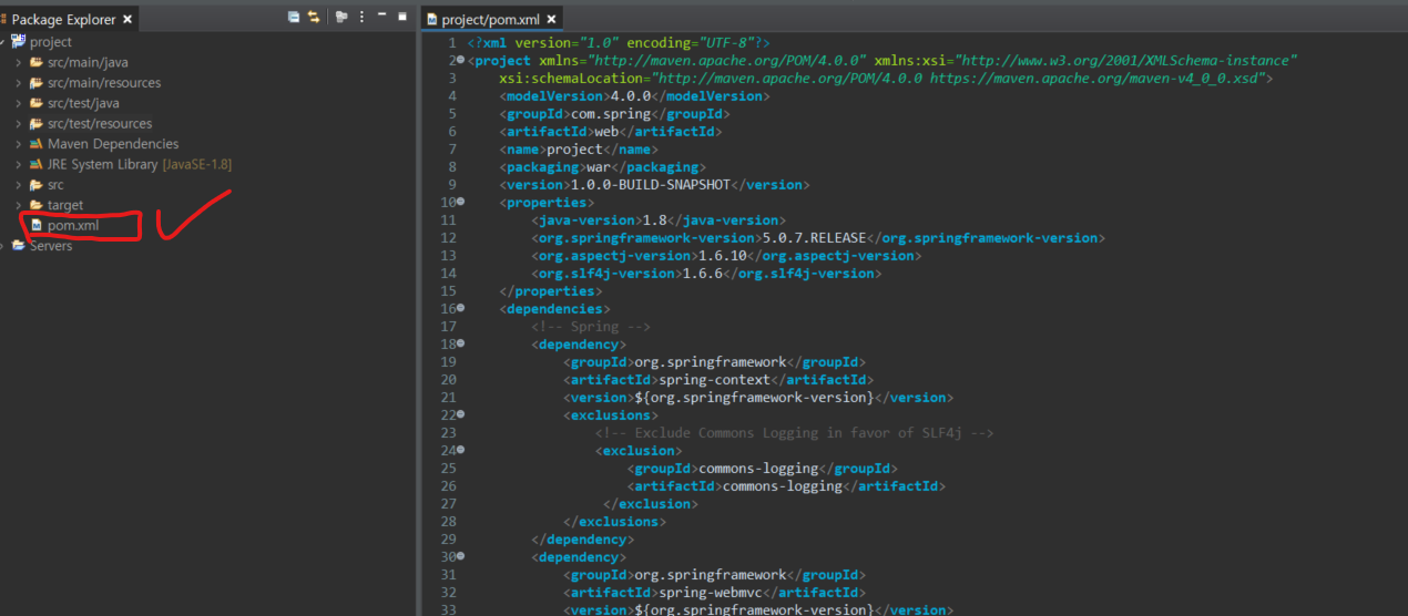 스프링 프로젝트 설정(pom.xml)