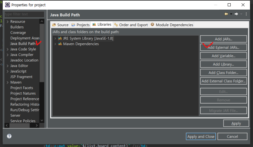 이 connector jar file을 자바 빌드에 설정을 합니다.