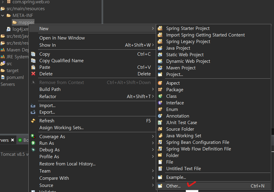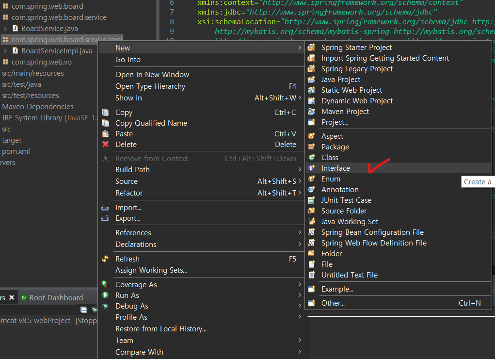 이젠 서버(controller)와 데이터베이스을 연결한 계층들 (vo/service/serviceimpl/dao/mapper)을 생성하겠습니다.