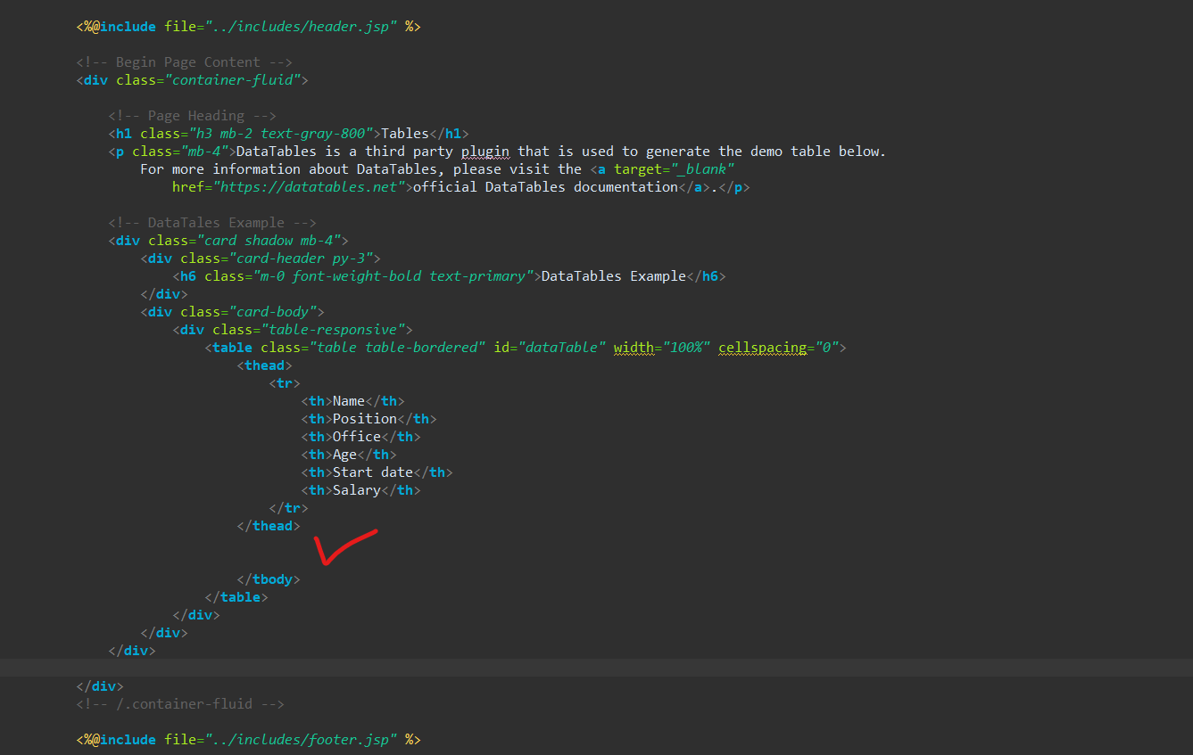 <h1 class="h3 mb-2 text-gray-800">Tables</h1>