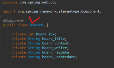 vo 폴더를 만들어주어 boardVO란 클래스 파일을 만들어줍니다.