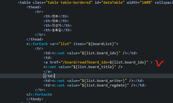 a태그 안에는 주소와 해당 인덱스를 타고 들어가야하기 때문에 board_idx를 넣어줍니다.