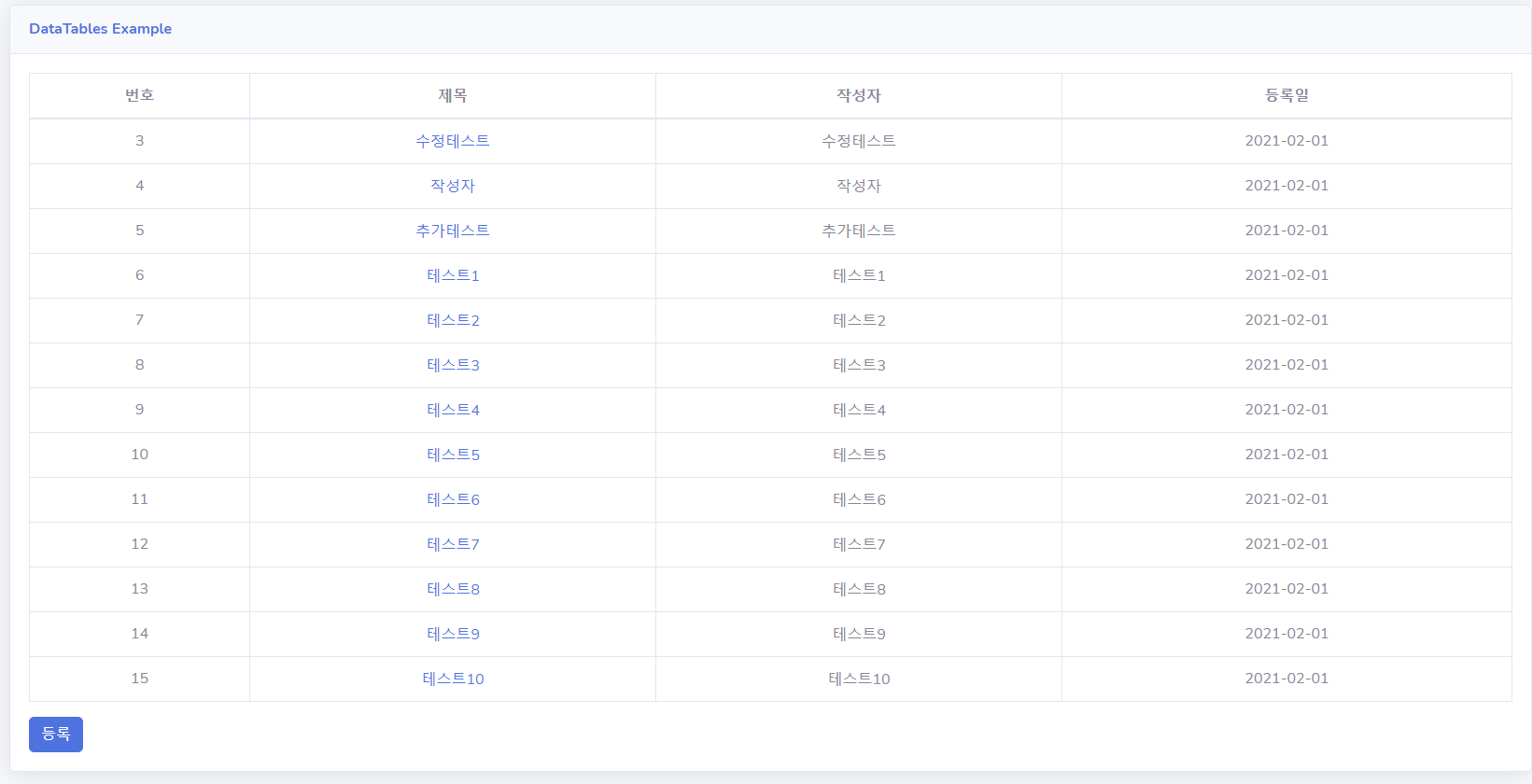 그럼 기존 화면에서 페이징과 검색부분이 삭제된 것을 볼 수 있습니다.