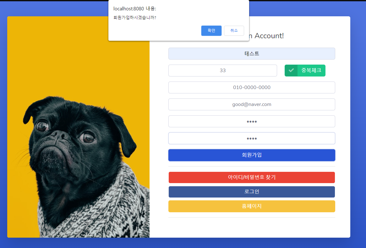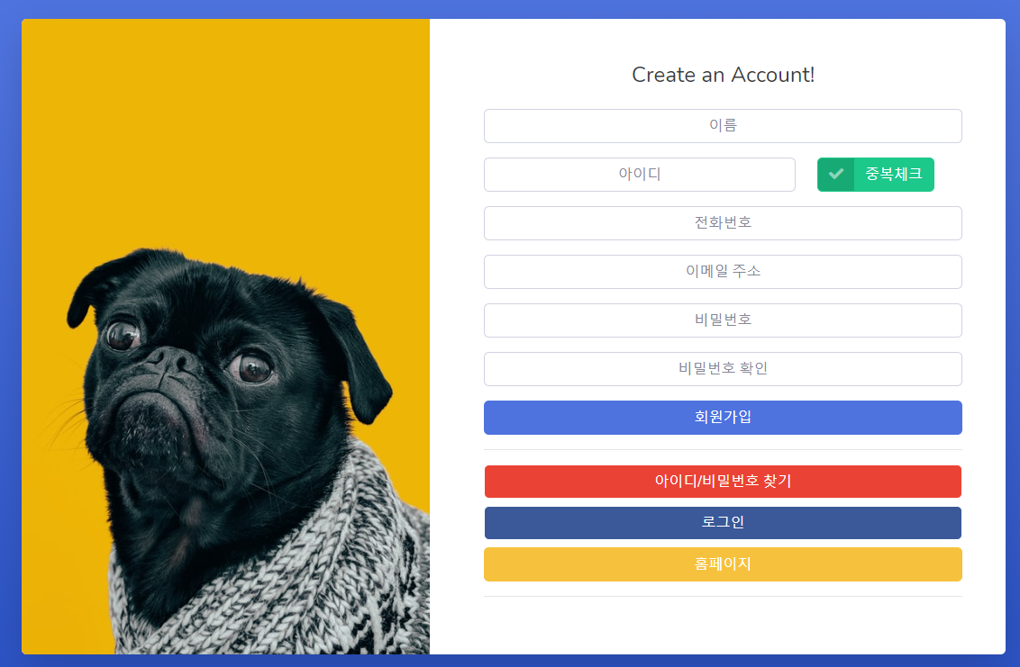 그리고 회원가입을 눌러보면 화면이 잘 나오는걸 알 수 있습니다.