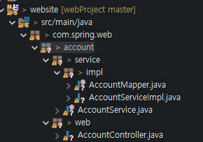 그리고 자바파일을 account라는 패키지에 만들어줍니다.