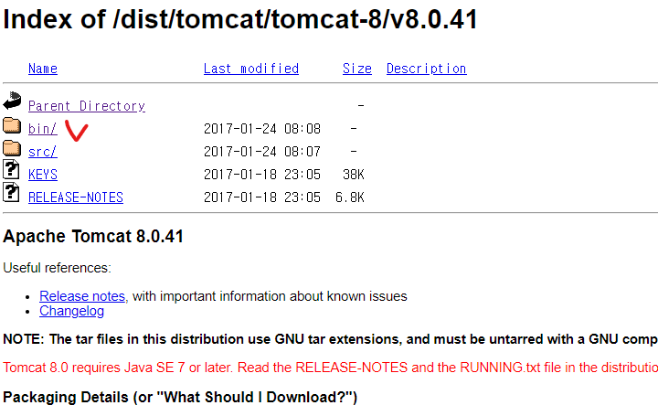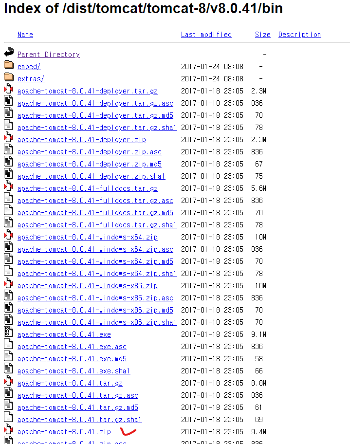 저는 톰캣사이트에 없는 8.0.41 버전을 다운받으려합니다.