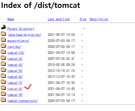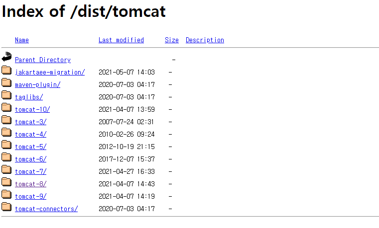 안녕하세요. 톰캣 사이트에 없는 옛날버전을 다운받기 위한 작업을 해보겠습니다.