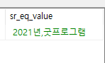 예를들어 sr_eq_value의 데이터 값(2021,굿프로그램) 을 콤마(,)을 기준으로 split하면,