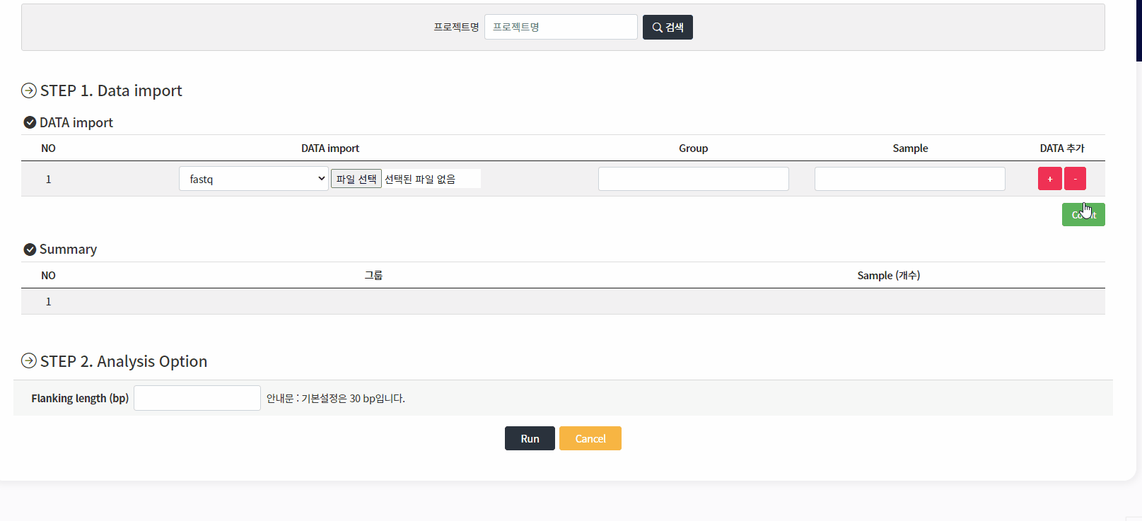 아래 화면과 같이 group의 입력값에 값을 넣은 뒤, 버튼을 누르면