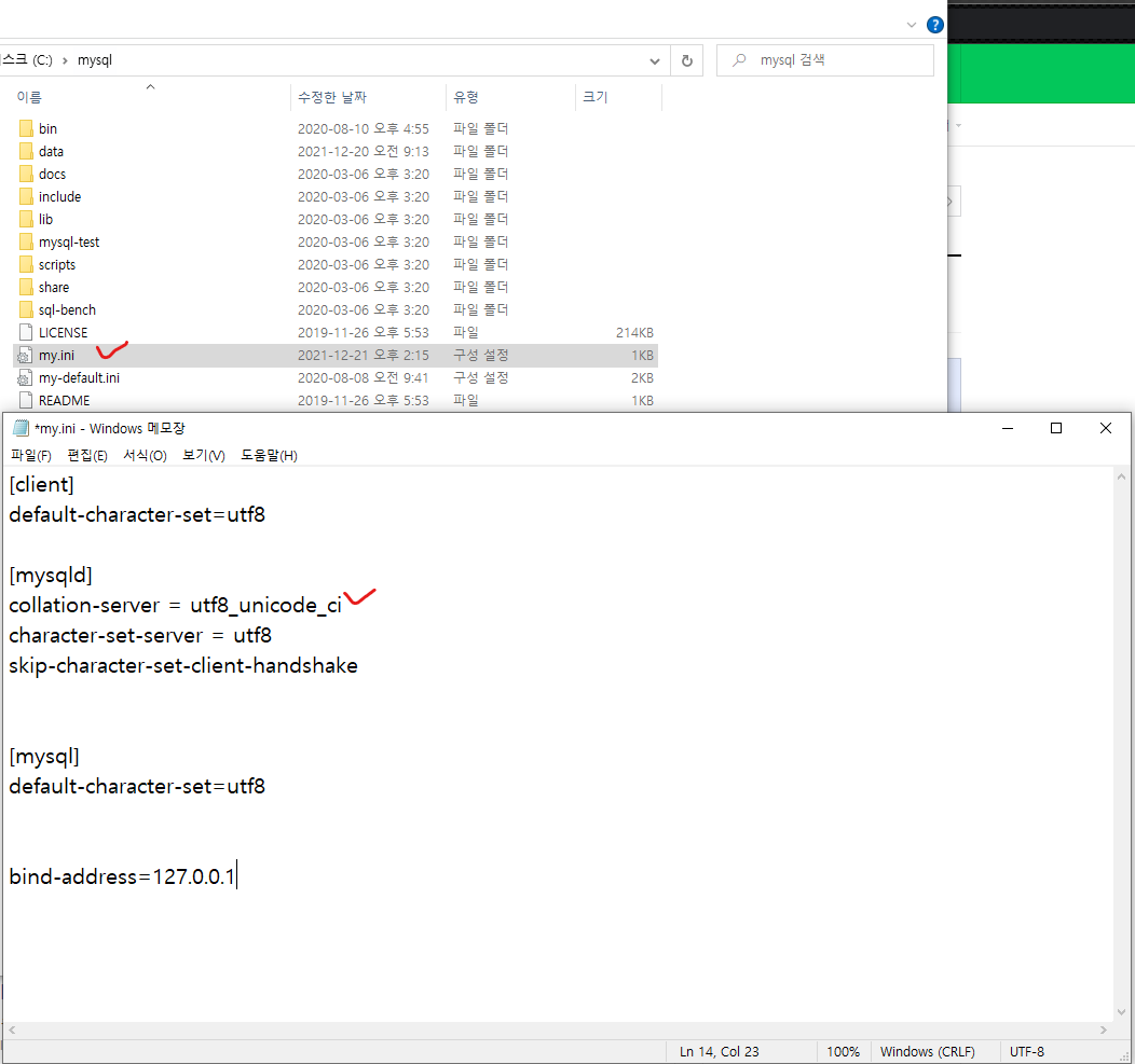 collation-server 를 utf8_general_ci 변경해주었더니 오류가 해결되었습니다!
