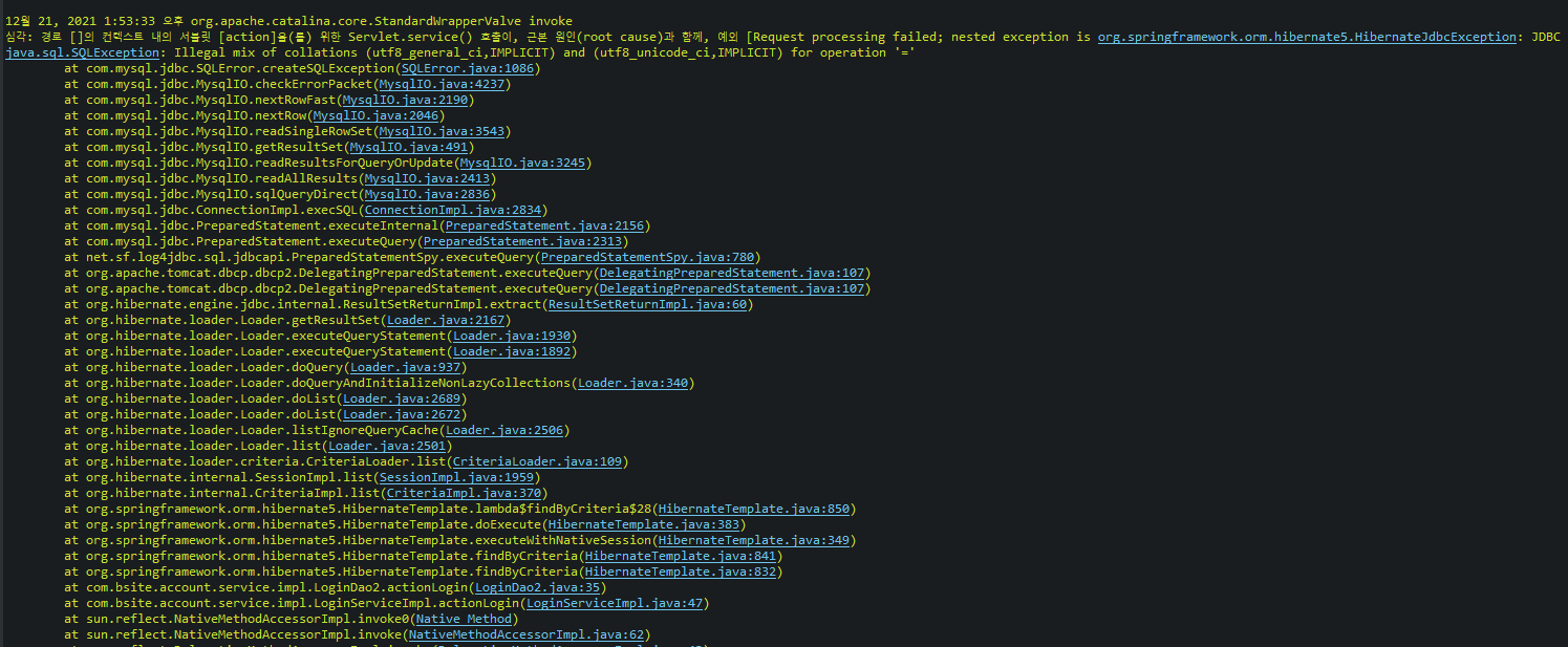 COLLATION, 즉 특정 캐릭터셋으로 작성된 문자열을 비교하다가 발생하는 에러입니다.