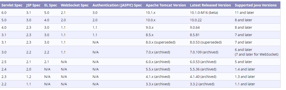 이는 톰캣 자바 버전표를 보면 확인할 수가 있습니다.