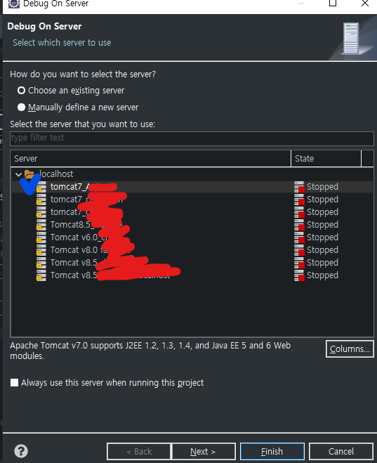 자바 1.8버전을 톰캣 7버전에서 돌릴려하니 아래와 같은 에러가 발생했습니다.