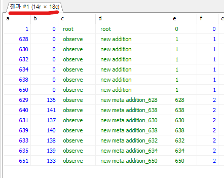 위와 같이 14개의 행이 출력되는 쿼리에서