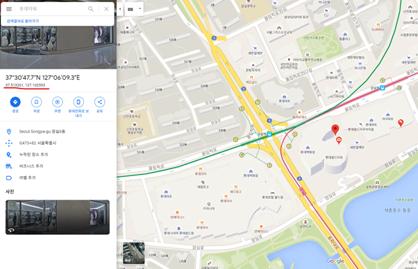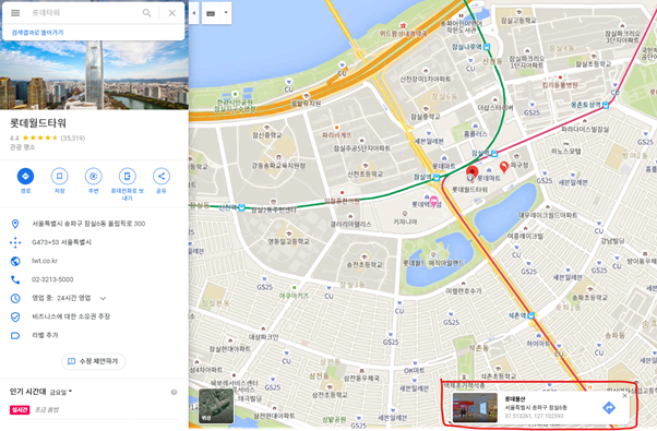 예를 들어서 롯데월드타워를 찾는다고