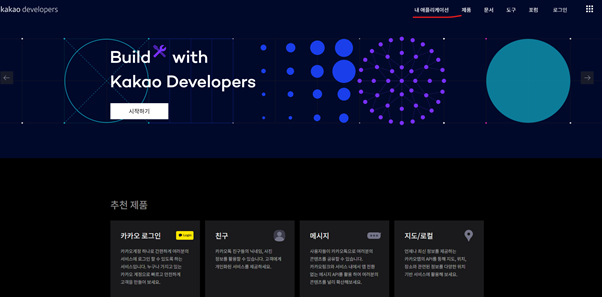 카카오 개발자 사이트(https://developers.kakao.com/)