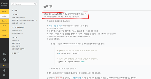 다시 카카오 맵 API 가이드로 돌아옵니다. (https://apis.map.kakao.com/web/guide/)
