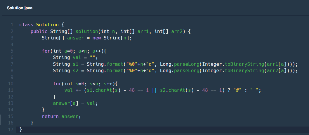 public String[] solution(int n, int[] arr1, int[] arr2) {