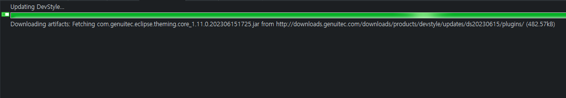 그리고 이클립스 재시작을 해주면 프로그래스에서 자동으로 설치되는 것을 볼 수 있습니다!