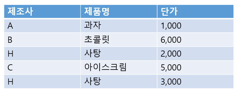 WHERE 단가 > ( ) (SELECT 단가 FROM 제품 WHERE 제조사='H')