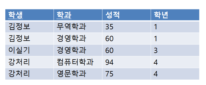 2. 성적은 학과만 알아도 식별이 가능하므로, 이 경우에는 성적 속성은 기본키에 ( ) Functional Dependency이다.