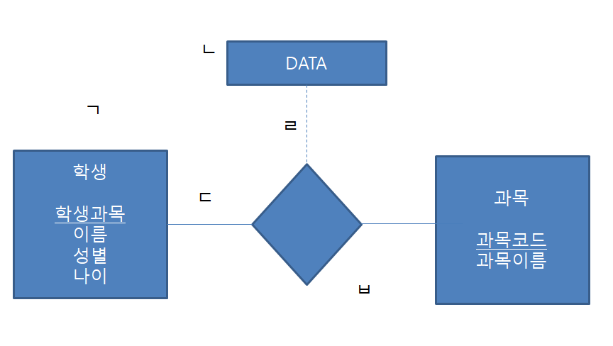 ( 4 ) : 두 개체집합 관계에서 생성되는 값을 저장하는 속성