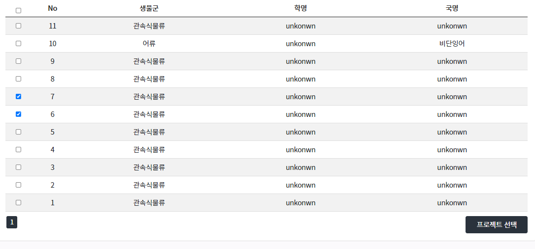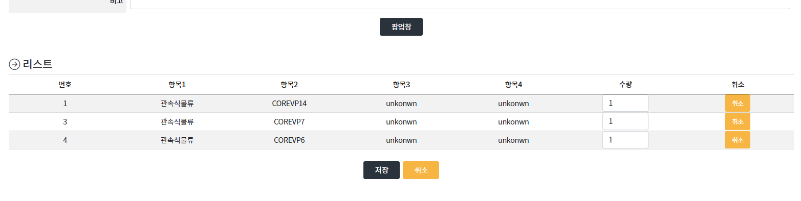 팝업창을 눌러서 팝업창의 리스트의 체크값을 선택한다음