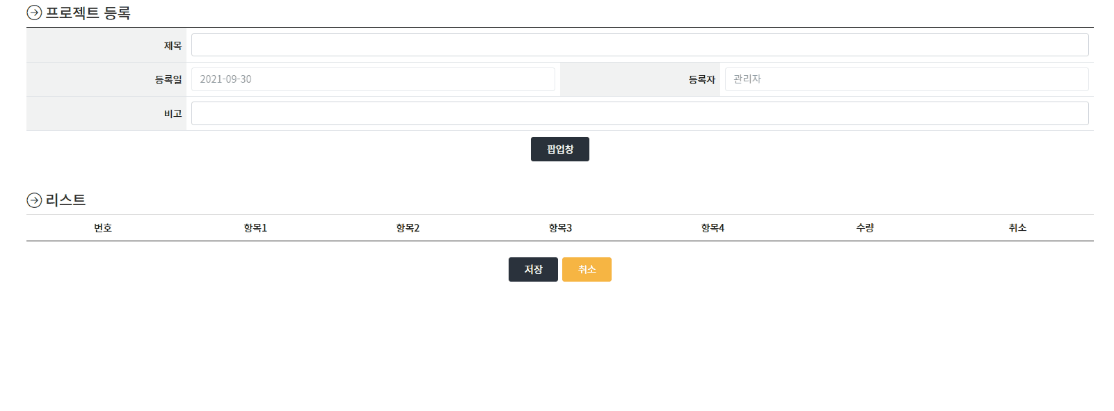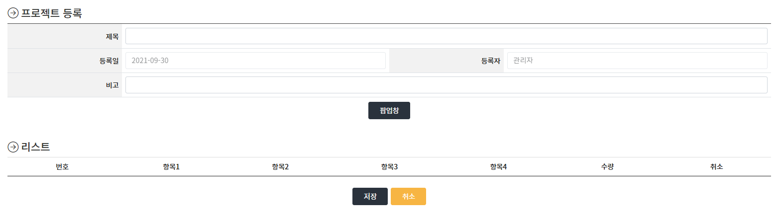 <caption>프로젝트 등록</caption>