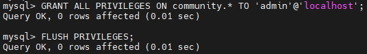데이터베이스에 사용할 계정을 만들어주고 반영을 해 줍니다.