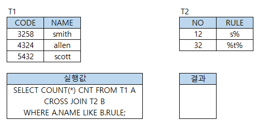 10. 다음은 테이블에서 조건값을 실행한 화면이다. 이에 대한 알맞는 결과값을 작성하시오.