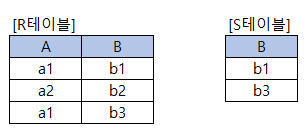 14. 다음 아래의 테이블을 확인하여 R%S의 결과를 테이블 형태로 기재하시오.