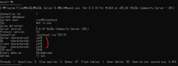 MySQL 기본 패키지는 character set 이 latin1로 설정되어 있습니다. 따라서 서버에 따라서 세팅을 바꿔줘야 할 필요가 있습니다.