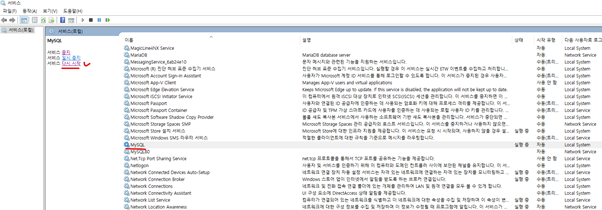그리고 서비스에 들어가 mysql을 중지 후, 재 시작을 해주면 반영이 됩니다.