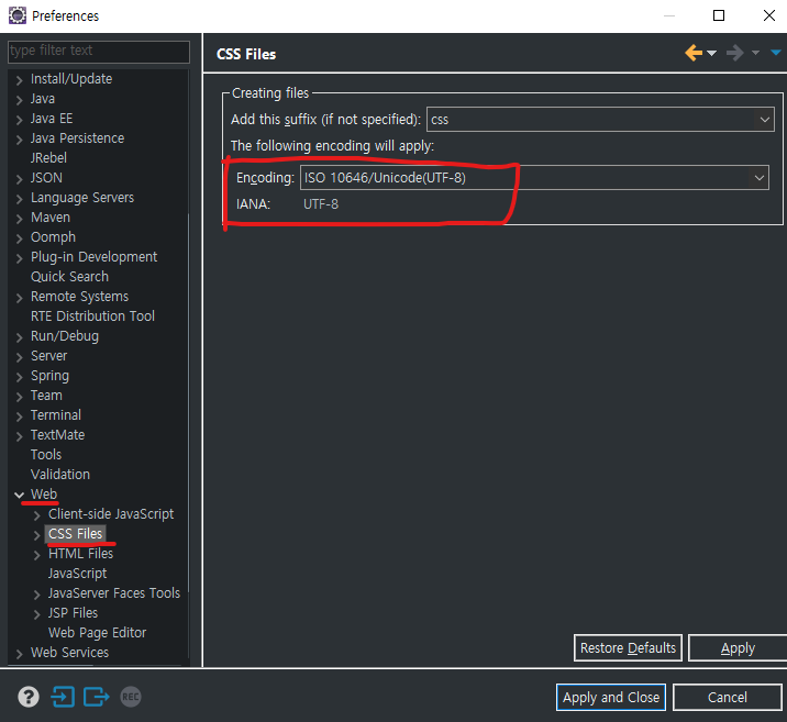 이클립스에서 자바 환경으로 설정 및 인코딩 설정하는 방법